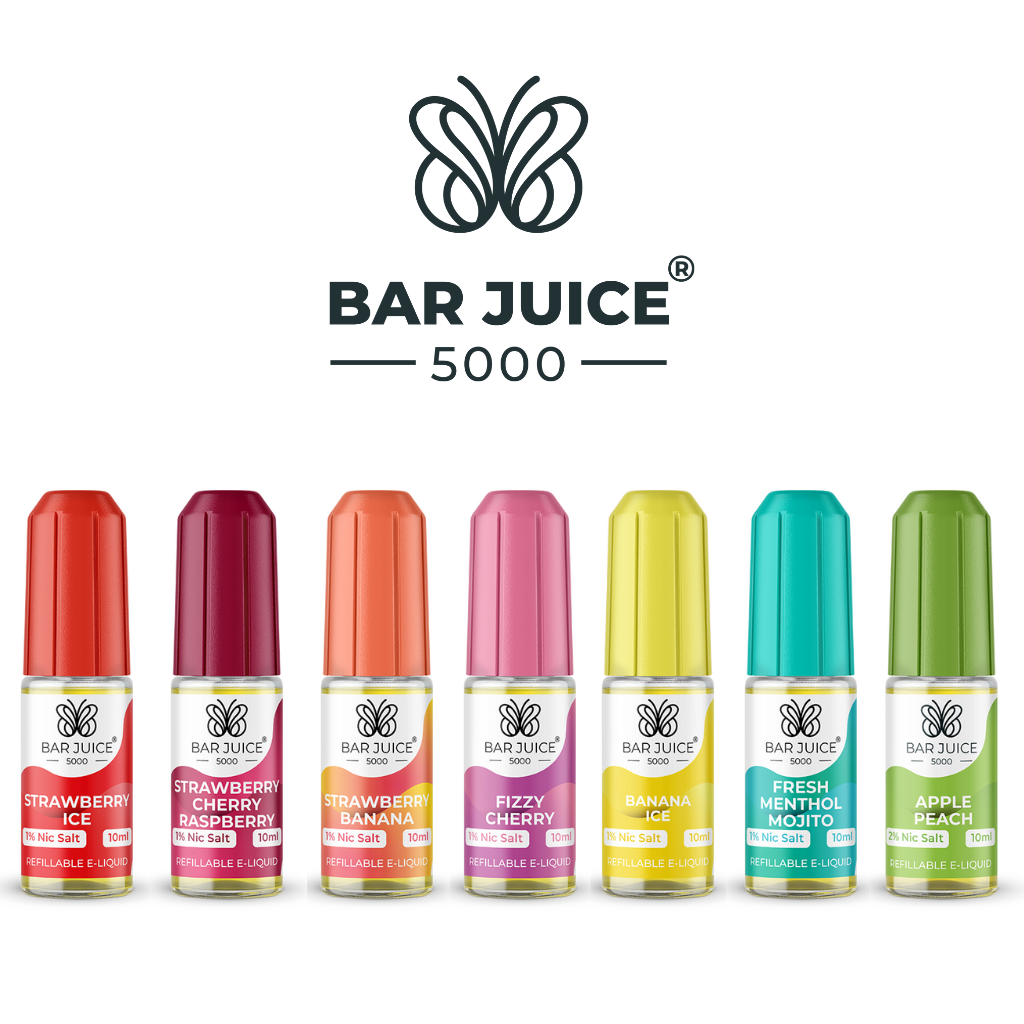 Featuring flavours reminiscent of those found in popular disposable vape pens and come in 41+ flavours and giving you much better value, this tasty collection of fruit, drink and ice cream flavours has much to recommend it. Available in salt nicotine strengths of 10mg and 20mg, Bar Juice nic salts vape juice flavours boast 50VG bases suitable for most MTL devices including pod systems and vape pens. The liquids are made in the UK